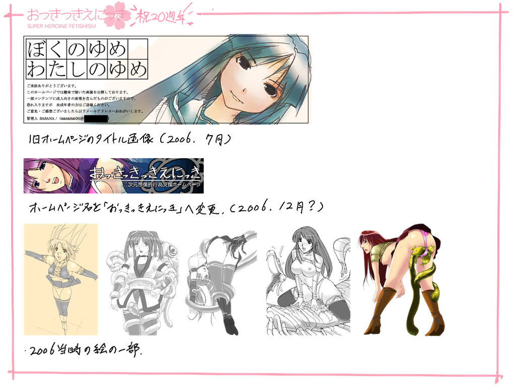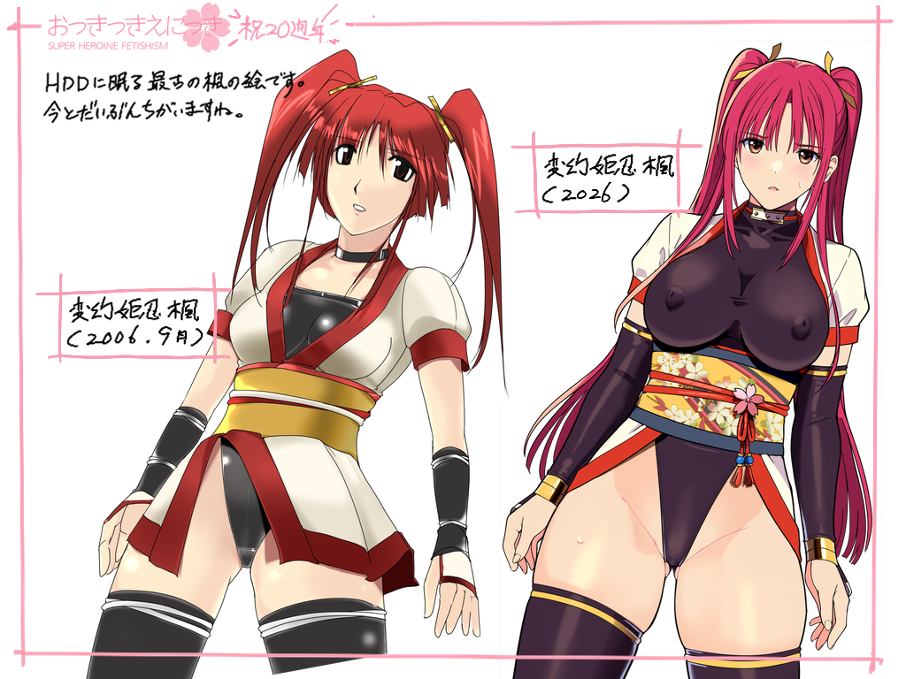 コメントでお話していたら、どうも今年は個人サークル「おっきっきえにっき」の20周年らしいという事に気づきまして、古いハードディスクの中から最古の変幻姫忍楓の絵を掘り出してきました。